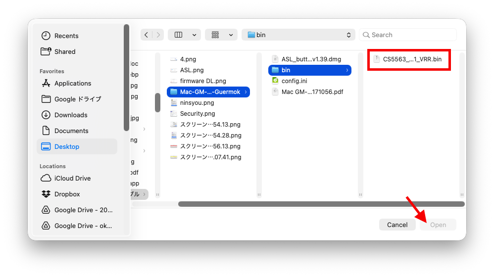 ダウンロードができたらファイルを開いてファームウェアを更新していきます。