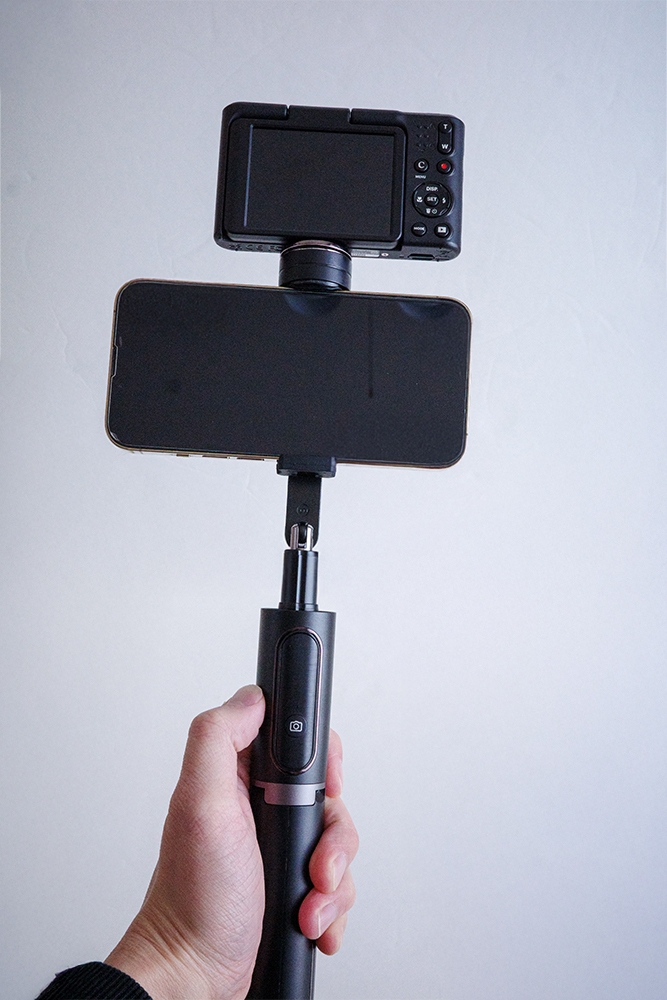 僕自身もそのタイプなのですが、コンデジをサッと設置したい場面で、カメラネジ付きの自撮り棒があるのは本当に助かります。