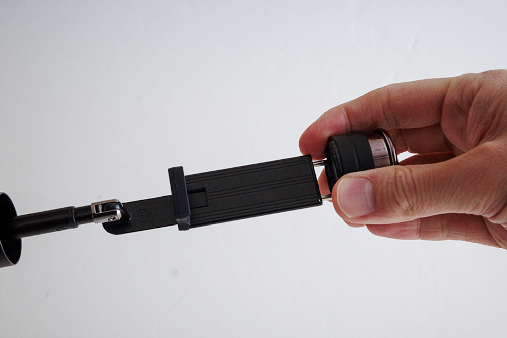 自撮り棒として使う時は、ホルダー部分だけを引っ張ると上だけが伸びる構造になっています。
