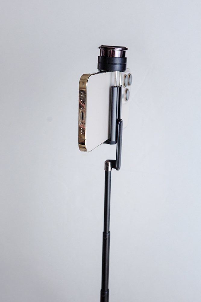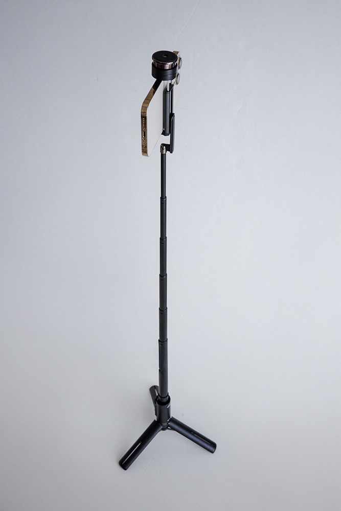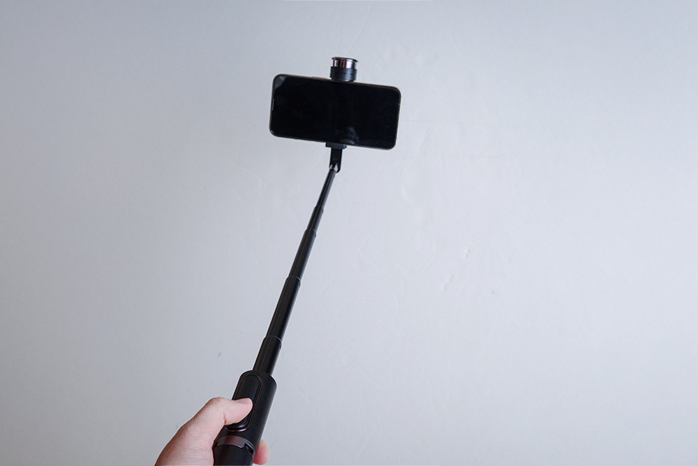 スマホを取り付けて、ポールを伸ばすだけで使用することができます。