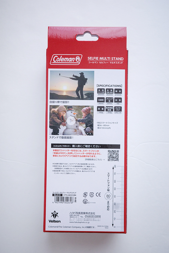 【Velbon(ベルボン)Coleman セルフィーマルチスタンド】 外観と特徴