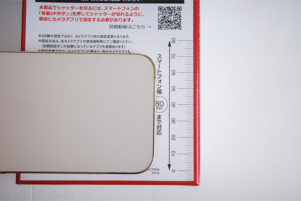 スマホはパッケージ裏面にも記載されている通り、幅80mmまでのサイズに対応しています。